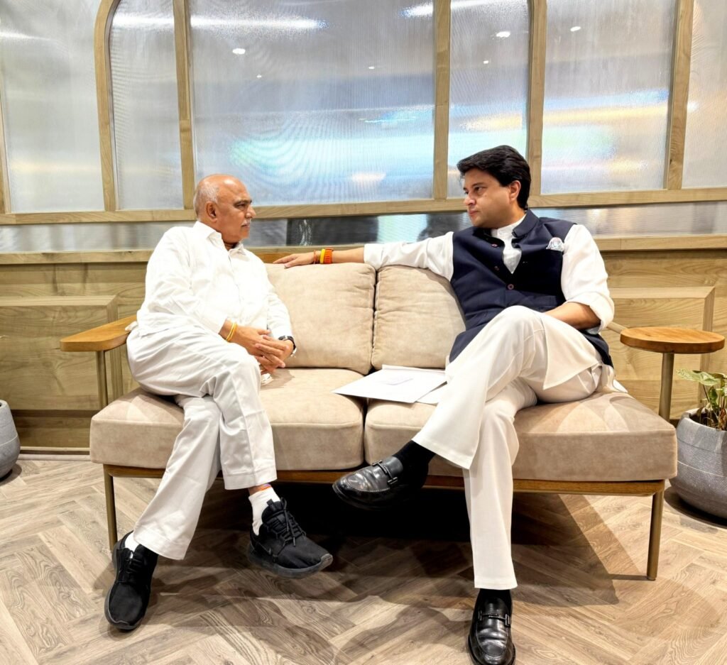 केंद्रीय मंत्री सिंधिया ने भाजपा प्रदेश अध्यक्ष हेमंत खण्डेलवाल से की मुलाकात