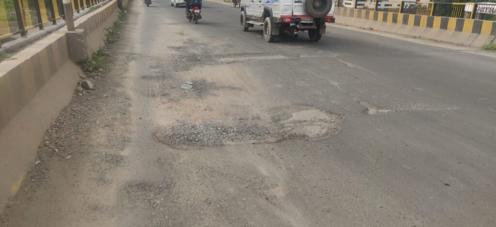 गड्ढों से जर्जर हो रहा राऊ रेलवे ओवर ब्रिज