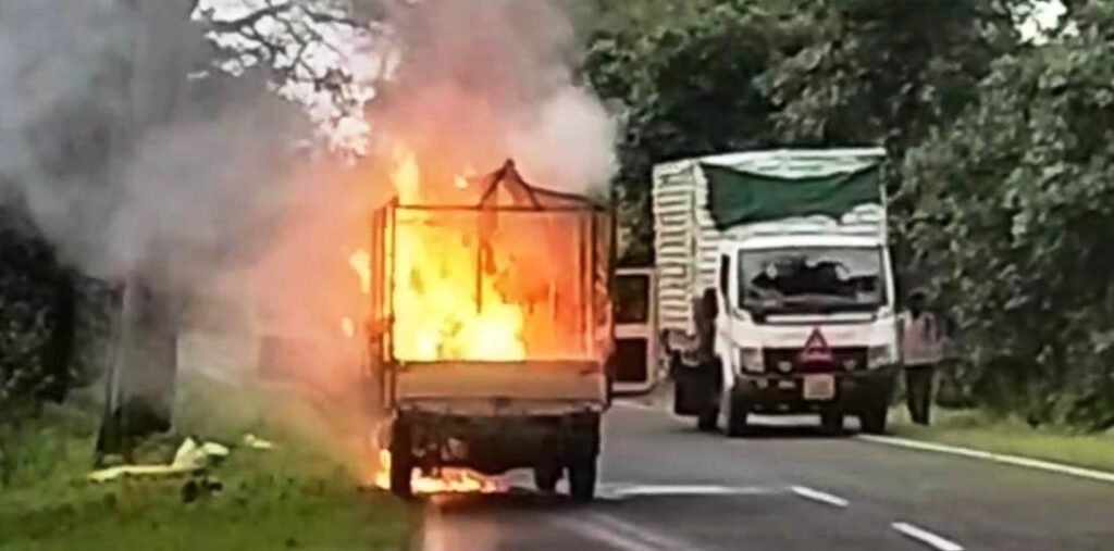 चलती मैजिक वैन में लगी भीषण आग, चालक ने कूदकर बचाई जान