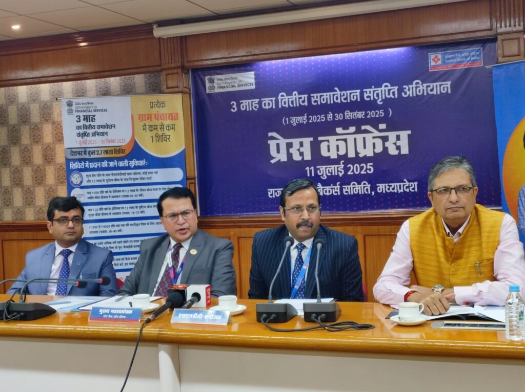 भोपाल।मध्य प्रदेश में वित्तीय समावेशन और सामाजिक सुरक्षा योजनाओं की पहुंच बढ़ाने के लिए प्रदेशभर में विशेष अभियान चलाया जा रहा है। इसके तहत प्रधानमंत्री जनधन योजना के अंतर्गत नए खाते खोले जा रहे हैं, पीएमजीबीवाई और पीएमएसबीवाई बीमा योजनाओं में नामांकन, अटल पेंशन योजना में पंजीयन, पुराने और निष्क्रिय […]