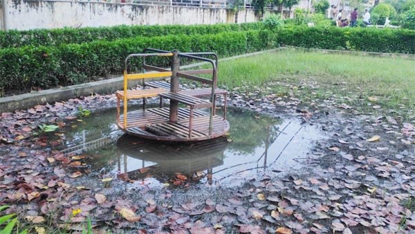 छतरपुर। छतरपुर शहर का गुरुनानक पार्क इस समय लापरवाही और बदइंतज़ामी की मार झेल रहा है। पार्क में कई जगह बारिश का पानी जमा है, घास लंबे समय से नहीं काटी गई और झूलों के पास बड़े-बड़े गड्ढे बने हुए हैं, जिनमें पानी भरा है। तस्वीरों में साफ देखा जा सकता है कि बच्चों के खेलने की जगहें गंदगी और पानी से भरी पड़ी हैं।