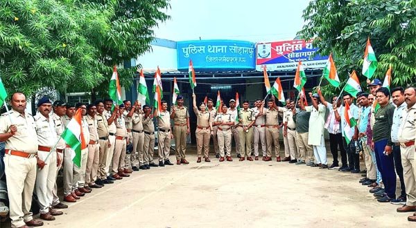 सोहागपुर। पुलिस, राजस्व एवं वन विभाग के कर्मचारियों ने शहर के मुख्य मार्ग से तिरंगा बाइक रैली निकाली। इसमें भाजपा नेता, कार्यकर्ता और आम नागरिक भी शामिल हुए। रैली मुख्य और अंदरूनी मार्गों से गुजरते हुए थाने में संपन्न हुई। एसडीओपी संजू चौहान, टीआई ऊषा मरावी सहित अधिकारियों ने भारत माता की जय और ‘तिरंगा अमर रहे’ के नारे लगाए। रैली के दौरान हर घर तिरंगा अभियान के लिए लोगों को प्रेरित किया गया। कार्यक्रम में नगर व विभागीय अधिकारियों तथा जनप्रतिनिधियों की उपस्थिति रही।