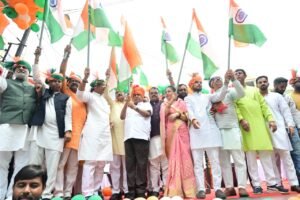 भोपाल। ’हर-घर तिरंगा’ अभियान के तहत गुरुवार को भोपाल मध्य विधानसभा क्षेत्र में भव्य तिरंगा यात्रा निकाली गई। भारतीय जनता पार्टी के प्रदेश अध्यक्ष व विधायक हेमंत खंडेलवाल तथा प्रदेश संगठन महामंत्री हितानंद ने इसमें शामिल होकर प्रदेशवासियों को शुभकामनाएं दीं। कार्यक्रम में प्रदेश उपाध्यक्ष श्रीमती सीमा सिंह जादौन, प्रदेश मीडिया प्रभारी आशीष उषा अग्रवाल, पूर्व विधायक ध्रुवनारायण सिंह, पूर्व सांसद आलोक संजर समेत बड़ी संख्या में पदाधिकारी और कार्यकर्ता मौजूद रहे।