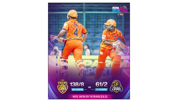 इससे पहले आज यहां वेस्ट दिल्ली लॉयंस ने टॉस जीतकर पहले गेंदबाजी करने का फैसला किया। बल्लेबाजी करने उतरी नई दिल्ली लॉयंस की शुरुआत बेहद खराब रही और उसने अपने चार विकेट मात्र 17 रन के स्कोर पर गंवा दिये। शिवम गुप्ता (शून्य) और पार्थ बाली (शून्य) को मनन भारद्वाज ने पहले ही ओवर में आउट किया। ध्रुव कौशिक (10) और केशव दलाल चार रन बनाकर आउट हुये।