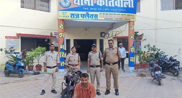 छतरपुर। छतरपुर नगर के थाना कोतवाली क्षेत्र में हुई मोटरसाइकिल चोरी की घटना का पुलिस ने महज दो दिन में खुलासा कर दिया। फरियादी तुलसीदास प्रजापति निवासी छतरपुर की रिपोर्ट पर महोबा रोड से चोरी हुई मोटरसाइकिल की तलाश शुरू की गई थी। घटना स्थल और आसपास लगे सीसीटीवी कैमरों की फुटेज खंगालने पर पुलिस को आरोपी की पहचान करने में सफलता मिली।