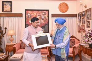 भोपाल। मुख्यमंत्री डॉ. मोहन यादव ने दिल्ली प्रवास के दौरान केंद्रीय पेट्रोलियम एवं प्राकृतिक गैस मंत्री हरदीप पुरी से उनके निवास पर सौजन्य भेंट की। इस अवसर पर मुख्यमंत्री ने उन्हें वैदिक घड़ी भेंटकर शुभकामनाएं दीं। मुलाकात के दौरान मंत्रालय से जुड़े कई लंबित मुद्दों पर भी विस्तार से चर्चा की गई।