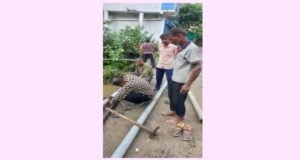 झूल रही पाइप लाइन को ऊपर किया