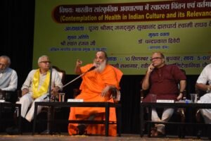 भोपाल। भारतीय सांस्कृतिक परंपरा में स्वास्थ्य की अवधारणा और उसकी आधुनिक समय में प्रासंगिकता पर केंद्रित एक विशेष संगोष्ठी का आयोजन किया गया। कार्यक्रम की अध्यक्षता पूज्य श्रीमद् जगद्गुरु सुखानंद द्वाराचार्य स्वामी राघव देवाचार्य ने की।