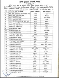 भोपाल। पुलिस विभाग में आज बड़े पैमाने पर तबादले किए गए। कुल 89 आरक्षकों और प्रधान आरक्षकों का स्थानांतरण किया गया है। सभी तबादले संबंधित कर्मचारियों की स्वेच्छा से मांगे गए स्थानों पर किए गए हैं। स्थानांतरित आरक्षकों और प्रधान आरक्षकों की सूची जारी कर दी गई है,जो इस प्रकार है।