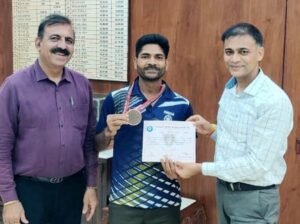 रतलाम। पश्चिम रेलवे रतलाम मंडल के वाणिज्य विभाग में कनिष्ठ लिपिक के पद पर कार्यरत मनीराम पटेल ने 90वीं ऑल इंडिया रेलवे एथलेटिक्स चैंपियनशिप में शानदार प्रदर्शन करते हुए कांस्य पदक हासिल कर न केवल रतलाम मंडल बल्कि पश्चिम रेलवे का नाम भी गौरवान्वित किया है। यह चैंपियनशिप पूर्व रेलवे, कोलकाता (पश्चिम बंगाल) में आयोजित की गई, जिसमें श्री पटेल ने 35 किलोमीटर पैदल चाल प्रतियोगिता में भाग लिया और उत्कृष्ट प्रदर्शन करते हुए तृतीय स्थान प्राप्त किया। उनकी इस सराहनीय उपलब्धि पर मंडल रेल प्रबंधक अश्वनी कुमार ने उन्हें सम्मानित करते हुए भविष्य में और उत्कृष्ट प्रदर्शन के लिए शुभकामनाएं दीं। इसके अलावा, वरिष्ठ मंडल इंजीनियर (समन्वय) एवं सचिव, रतलाम मंडल खेलकूद संघ पीयूष पांडेय, वरिष्ठ मंडल वाणिज्य प्रबंधक श्रीमती हीना वी. केवलरामानी, वाणिज्य विभाग के अन्य अधिकारीगण तथा मुख्य कल्याण निरीक्षक (खेलकूद) हरीश चांदवानी ने भी श्री पटेल को बधाई एवं शुभकामनाएं प्रेषित कीं।