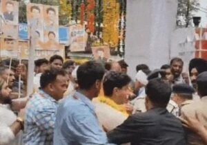 मुरैना। केंद्रीय मंत्री ज्योतिरादित्य सिंधिया ने कार्यकर्ताओं को शिलान्यास कार्यक्रम के दौरान गेट से बाहर कर दिया. सिंधिया पोस्ट ऑफिस पासपोर्ट सेवा केंद्र भवन का भूमि पूजन और शिलान्यास कार्यक्रम में पहुंचे थे. इस दौरान भीड़ ज्यादा हो गई, वहां जगह कम थी. जगह कम होने की वजह से पुलिस कार्यकर्ताओं को अंदर नहीं जाने दे रही थी. इसी को लेकर पुलिस और कार्यकर्ताओं के बीच जोर आजमाइश भी हुई. यह जब केंद्रीय मंत्री सिंधिया को पता चला तो खुद केंद्रीय मंत्री पुलिस कर्मियों की सहायता के लिए आगे आए और कार्यकर्ताओं को बाहर कर दिया.