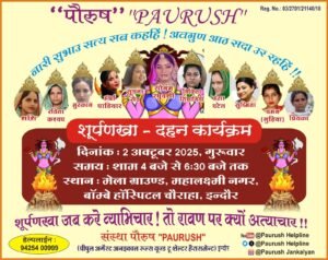 इंदौर: इस बार दशहरे पर शहर में अनोखा आयोजन देखने को मिलेगा. रावण दहन की परंपरा को अलग रूप देते हुए संस्था पौरुष ने घोषणा की है कि इस बार रावण का नहीं बल्कि 11 मुखों वाली शूर्पणखा का दहन किया जाएगा. इन मुखों में उन महिलाओं के चेहरे शामिल होंगे, जिन्होंने समाज को शर्मसार करने वाले अपराधों को अंजाम दिया.