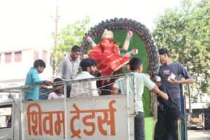 रीवा।शारदेय नवरात्रि नवरात्रि सोमवार से शुरू होने जा रही है. घट पूजन के साथ दुर्गा प्रतिमाओं की स्थापना की जाएगी. इस बार माता रानी हाथी पर सवार होकर आएंगी. दिन भर प्रतिमा उठाने का दौर जारी रहा. ढ़ोल नगाड़े के साथ जयकारे लगाते लोग दुर्गा प्रतिमाएं लेकर निकले.
