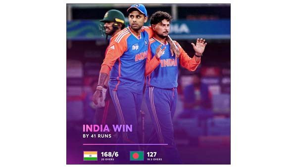 अभिषेक ने अपनी ताबड़तोड़ बल्लेबाजी जारी रखते हुए 37 गेंदों पर 75 रन में छह चौके और पांच छक्के लगाए। शुभमन गिल ने 29 और हार्दिक पांड्या ने 38 रन बनाये। अक्षर पटेल 15 गेंदों में 10 रन बनाकर नाबाद रहे। भारत ने निर्धारित 20 ओवरों में छह विकेट पर 168 रन का स्कोर बनाया। बंगलादेश के लिए रियाद हुसैन ने दो विकेट लिये। तंजिम हसन साकिब, मुस्तफिजुर रहमान और मोहम्मद सैफुद्दीन ने एक-एक बल्लेबाज को आउट किया।