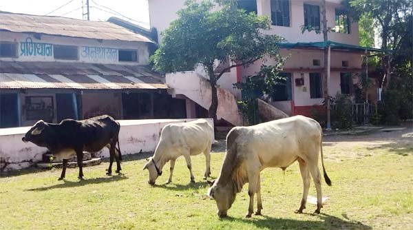 विदित है कि बाजार, चौराहों, सब्जी मंडी के आसपास काफी संख्या में मवेशियों का जमघट लगा रहता है. खेल मैदान में मवेशियों के विचरण करने से बच्चों की खेल गतिविधियां भी नहीं हो पाती है. कई बार मवेशी आपस में लड़ते-झगड़ते हुए दौड़ लगाते है इससे दुर्घटना का डर लगा रहता है. शुक्रवार की दोपहर को 2.37 बजे भी बड़ी संख्या में मवेशी बड़े स्कूल परिसर में विचरण करते हुए देखे गये.