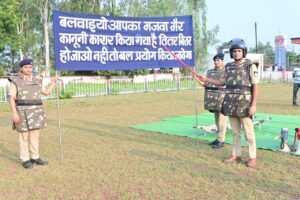 शांति और सुरक्षा व्यवस्था बनाए रखना पुलिस का प्रमुख उद्देश्य होता है व इसमें किसी भी प्रकार की लापरवाही नहीं होनी चाहिए. पुलिस की कार्रवाई ऐसी होनी चाहिए जिससे आम जन में सुरक्षा का भाव और असामाजिक तत्वों में पुलिस का भ्रय होना चाहिए. इसी कड़ी में नगर पुलिस अधीक्षक देवेंद्र प्रताप सिंह ने जानकारी देते हुए बताया कि आपात स्थिति से निबटने के लिए की जाने वाली कार्रवाई का परीक्षण और क्षमता का आंकलन करने के उद्देश्य से समय समय पर बलवा ड्रिल आयोजित की जाती है. इसी कड़ी में आगामाी त्योहारों के मद्देनजर एक बार फिर से मॉक ड्रिल किया गया.