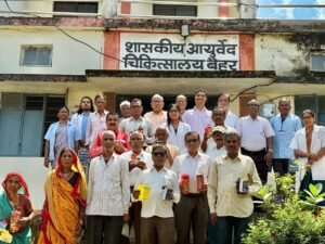 बालाघाट: ज़िले के कलेक्टर मृणाल मीणा के निर्देशन और जिला आयुष अधिकारी डॉ. मिलिंद चौधरी के मार्गदर्शन में 01 अक्टूबर को आयुष विभाग द्वारा शासकीय आयुर्वेद चिकित्सालय बैहर में स्वच्छता ही सेवा पखवाड़ा के अंतर्गत निःशुल्क वृद्ध जन स्वास्थ्य शिविर का आयोजन किया गया। इस शिविर में वृद्धजनों का स्वास्थ्य परीक्षण किया गया, जिसमें हीमोग्लोबिन, शुगर और रक्तचाप की जांच की गई और निःशुल्क आयुर्वेद औषधियाँ प्रदान की गईं।