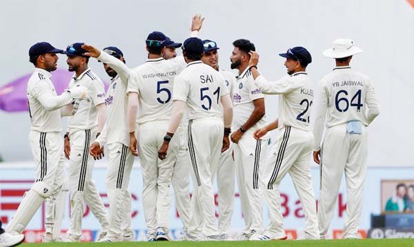 अहमदाबाद, 02 अक्टूबर (वार्ता) तेज गेंदबाजों मोहम्मद सिराज ने चार और जसप्रीत बुमराह ने तीन विकेट लेकर वेस्ट इंडीज को भारत के खिलाफ पहले क्रिकेट टेस्ट के पहले दिन गुरूवार को पहली पारी में 44.1 ओवर में 162 रन पर समेट दिया।