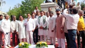 जबलपुर। राष्ट्रपिता महात्मा गांधी की जयंती के अवसर पर आज शहर के टाउन हॉल में कांग्रेस और भाजपा नेताओं ने पहुंचकर बापू को याद किया। टॉउन हॉल कैंपस में जितनी बड़ी संख्या में कांग्रेस पदाधिकारी और कार्यकर्ता पहुंचे थे, उतने ही भाजपा के नेता ने भी राष्ट्रपिता को श्रद्धांजलि अर्पित की और उनके सत्य व अहिंसा के मार्ग पर चलने का संकल्प लिया। कांग्रेस ने प्रतिमा स्थल पर एक संगोष्ठी का भी आयोजन किया। उसके पश्चात पौधा रोपण टाऊन हॉल में किया गया। वरिष्ठ कांग्रेसी कार्यकर्ताओं का सम्मान किया गया। इस अवसर पर कांग्रेस नेता दिनेश यादव, पूर्व विधायक संजय यादव, टीकाराम कोष्टा आदि उपस्थित थे। पीडब्ल्यूडी मंत्री राकेश सिंह ने कहा कि सत्य और अहिंसा को स्वाधीनता आंदोलन की ढाल बनाने वाले राष्ट्रपिता महात्मा गांधी जी की जयंती पर आज उनकी प्रतिमा पर श्रद्धासुमन अर्पित कर नमन किया गया। गांधी जी रामराज्य चाहते थे, उन्होने ने कहां था कि कांग्रेस को अब समाप्त कर देना चाहिए। उनका सिंद्धात समरसता था, भाजपा पंडित दीनदयाल उपाध्यय के आदर्शों