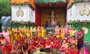 भुआ बिछिया/मंडला। दुर्गोत्सव विसर्जन की मधुर बेला पर नगर की महिलाएं भक्तिभाव से ओतप्रोत नजर आईं। भुआ दुर्गोत्सव पंडाल में महिला मंडल की 40 से 50 महिलाओं ने लाल-पीले पारंपरिक परिधानों में सुसज्जित होकर माता रानी के चरणों में चूड़ी, बिंदी, चुनरी, मिठाई और सुहाग सामग्री अर्पित की। भक्ति संगीत और पूजन मंत्रों के बीच सुहागिनों ने माता से अखंड सौभाग्य, दीर्घ आयु और सुख-समृद्धि की प्रार्थना की।पूजन के उपरांत महिलाओं ने एकादशी व्रत कथा श्रवण किया और फलाहार एवं प्रसाद ग्रहण कर व्रत का समापन किया। कार्यक्रम में मनोरमा गोस्वामी, निशा गर्ग, आरती शर्मा, मीना राय, रानी साहू, स्मिता श्रीवास्तव सहित अनेक महिलाएं उपस्थित रहीं। वातावरण में माता जयकारों और भक्ति गीतों की गूंज देर तक बनी रही।इसी तरह आदर्श दुर्गोत्सव समिति जंतीपुर के पंडाल में भी सैकड़ों महिलाओं ने एक समान लाल परिधानों में एकादशी पूजन किया। मातृशक्तियों ने अवसान माता का विधिवत पूजन कर श्रृंगार सामग्री अर्पित की, फल-मिठाई का भोग लगाकर प्रसाद वितरण किया तथा परिवार की मंगलकामना की। श्रद्धा और आस्था के इस आयोजन ने नगर में देवी भक्ति और सुहागिनों की सामूहिक एकता का अनोखा संदेश दिया।
