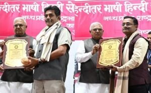 भोपाल: मध्यप्रदेश राष्ट्रभाषा प्रचार समिति द्वारा आयोजित प्रतिष्ठित हिंदीतरभाषी हिंदी सेवी सम्मान वर्ष 2025 का भव्य आयोजन भोपाल स्थित हिंदी भवन, श्यामला हिल्स परिसर में सम्पन्न हुआ। इस समारोह में मुख्य अतिथि के रूप में राज्यपाल मंगुभाई पटेल उपस्थित रहे, जबकि कार्यक्रम की अध्यक्षता समिति के उपाध्यक्ष रघुनंदन शर्मा ने की।