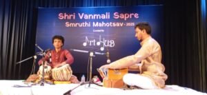 जबलपुर: वनमाली सप्रे स्मृति महोत्सव के अंतर्गत शनिवार को सायं खचाखच भरे शहीद स्मारक सभागृह में शास्त्रीय संगीत सभा का आयोजन किया गया। कार्यक्रम के मुख्य अतिथी डॉ. जगदीश चंद्र गौर, वरिष्ठ चिकित्सक एवं सुरेश अग्रवाल वरिष्ठ प्रचारक, रा. स्व.संघ रहे।