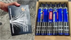 डीआरआई द्वारा रविवार को जारी एक आधिकारिक विज्ञप्ति के अनुसार, डीआरआई अधिकारियों ने न्हावा शेवा बंदरगाह पर चीन से आए और अंकलेश्वर जाने वाले एक 40 फुट लंबे कंटेनर को पकड़ा, जिसमें “लेगिंग्स” होने का दावा किया गया था। तलाशी में पता चला कि कपड़ों की एक ऊपरी परत के पीछे 46,640 पटाखे छिपाए गए थे। अधिकारियों ने 4.82 करोड़ मूल्य की यह पूरी खेप ज़ब्त कर ली।