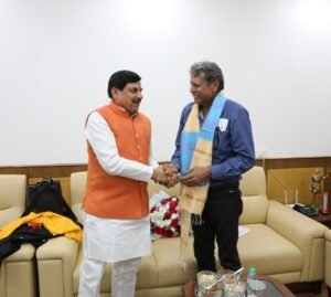 भोपाल। मुख्यमंत्री डॉ. मोहन यादव से गुरुवार को स्टेट हैंगर भोपाल में केंद्रीय मंत्री शिवराज सिंह चौहान और पूर्व भारतीय क्रिकेट टीम के कप्तान कपिल देव ने भेंट की। तीनों हस्तियां आपसी चर्चा के बाद विदिशा में आयोजित सांसद खेल महोत्सव में शामिल होने के लिए रवाना हुईं।