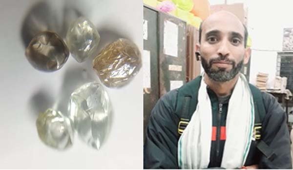 पन्ना। रत्नगर्भा पन्ना मे आये दिन किसी न किसी की किस्मत चमकती रहती है आज फिर एक व्यक्ति को पांच हीरे मिले। जिससे उसकी खुशी का कोई ठिकाना नहीं रहा। हासिल जानकारी के अनुसार बृजेंद्र कुमार शर्मा निवासी सिरस्वाहा ने भरका उथली हीरा खदान मे हीरा खोदने का कार्य किया। जिसे एक साथ पांच हीरे मिले जिनकी बजारू अनुमानित कीमत 10 लाख बताई जा रही है। जिसे उसने हीरा कार्यालय मे जमा करा दिया है। हीरा पारखी अनुपम सिंह ने बताया कि तीन उज्जवल किस्म के हीरे जिनका वजन 0.74 कैरेट, 2.29 कैरेट तथा 0.77 कैरेट है तथा ऑफ कलर के दो हीरे मिले हैं जिनका वजन 1.08 कैरेट एवं 0.91 कैरेट है। उपरोक्त पांचों हीरों का वजन 5.79 कैरेट है। जिन्हें आगामी नीलामी मे रखा जायेगा।