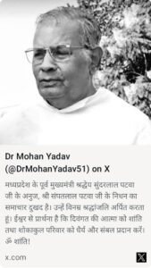 डॉ. यादव ने कहा कि संपत लाल पटवा का निधन समाज के लिए एक अपूर्णीय क्षति है और उनकी सरलता व सेवाभाव को सदैव स्मरण किया जाएगा।