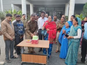 थाना प्रभारी राजीव उइके के द्वारा समस्त पुलिस स्टाफ एवं सभी नगर व ग्राम रक्षा समिति के सदस्यों की उपस्थिति में केक काटकर मनाते हुए समिति के सदस्यों का सम्मान करते हुए सभी सदस्यों की मेहनत और लगनशीलता की प्रशंसा की