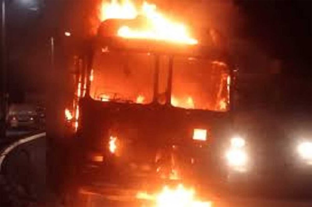 पुलिस ने बताया कि इसी दौरान बस के पास में एक महिला और उसकी छह बकरियां झुलसकर गंभीर रूप से घायल हो गयीं। घायल महिला को अस्पताल पहुंचाया गया।