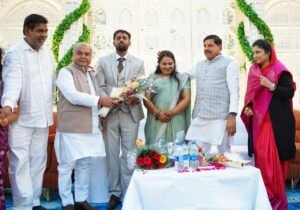 टीकमगढ। शहर के झांसी मार्ग पर स्थित जलसा रिसोर्ट में मुख्यमंत्री मोहन यादव एवं उनके साथ विधानसभा के अध्यक्ष नरेन्द्र सिंह तोमर पहुंचे। यहां जतारा के विधायक हरिशंकर खटीक की बेटी का विवाह समारोह था। इस समारोह में वह अपने तय कार्यक्रम के अनुसार उपस्थित हुए जहां उन्होंने प्रतिभा-अमित को आशीर्वाद दिया।