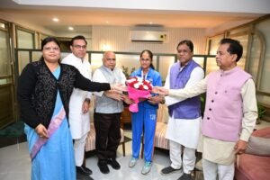 भोपाल। भारतीय जनता पार्टी के प्रदेश अध्यक्ष व विधायक हेमंत खण्डेलवाल ने शुक्रवार को भोपाल स्थित अपने निवास पर ब्लाइंड विमेंस वर्ल्ड कप विजेता टीम की खिलाड़ी, बैतूल की बेटी सुश्री दुर्गा यादव येवले को पुष्पगुच्छ भेंट कर सम्मानित किया। उन्होंने कहा कि सुश्री दुर्गा बैतूल सहित पूरे देश की युवा पीढ़ी और बेटियों के लिए प्रेरणा स्रोत हैं, जिन्होंने विषम परिस्थितियों के बावजूद अपने सपनों को साकार कर अद्भुत उदाहरण प्रस्तुत किया है। इस अवसर पर विधायक महेंद्र सिंह चौहान, चंद्रशेखर देशमुख, डॉ. योगेश पंडाग्रे एवं श्रीमती गंगा बाई उईके उपस्थित रहीं।