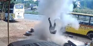 रीवा। शहर के सिविल लाइन थाना अन्तर्गत ट्रांसपोर्ट नगर में शाम को बस के टायर में हवा भरते समय अचानक धमाका हुआ. जिससे हवा भर रहा युवक हवा में उछल गया और उसके हाथ-पैर में गंभीर चोटे आई है. जिसे आनन-फानन उपचार के लिये संजय गांधी अस्पताल में भर्ती कराया गया है.