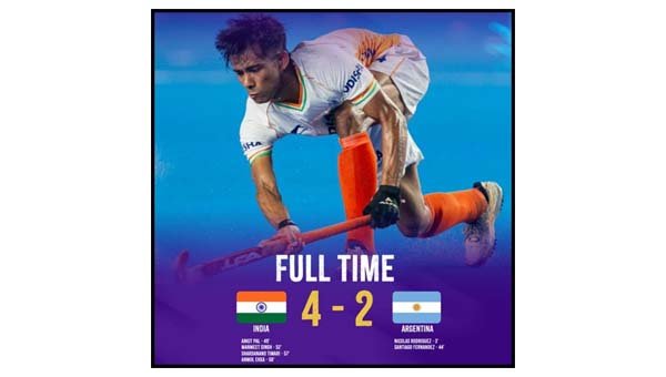 मेजबान टीम ने अर्जेंटीना के खिलाफ शानदार 4-2 से वापसी करते हुए जीत हासिल की, और सिर्फ 11 मिनट के छोटे से समय में चार गोल करके तीसरा स्थान हासिल किया। निकोलस रोड्रिग्ज (तीसरे’) और सैंटियागो फर्नांडीज ने (44वें) मिनट में मेहमान टीम को बढ़त दिलाई थी, जिसके बाद भारत के लिए अंकित पाल ने (49वें), मनमीत सिंह ने (52वें), शरदानंद तिवारी ने (57वें) और अनमोल एक्का ने (58वें) मिनट में गोल किए।