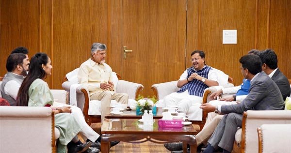 नयी दिल्ली, 19 दिसंबर (वार्ता) आंध्र प्रदेश के मुख्यमंत्री एवं तेलुगू देशम पार्टी (तेदेपा) सुप्रीमो एन. चंद्रबाबू नायडू ने शुक्रवार को यहां बिहार भवन में भारतीय जनता पार्टी (भाजपा) के राष्ट्रीय कार्यकारी अध्यक्ष नितिन नवीन से शिष्टाचार भेंट कर उन्हें बधाई एवं शुभकामनाएं दी।