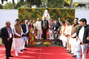 इसके पश्चात उपराष्ट्रपति राधाकृष्णन, राज्यपाल पटेल और मुख्यमंत्री डॉ. यादव ने डेली कॉलेज परिसर में लोकमाता देवी अहिल्याबाई होलकर की प्रतिमा का अनावरण किया। कार्यक्रम में लोकमाता अहिल्याबाई के सुशासन, जनकल्याण और सांस्कृतिक योगदान को स्मरण करते हुए उनके आदर्शों को आज के समय में प्रासंगिक बताया गया।
