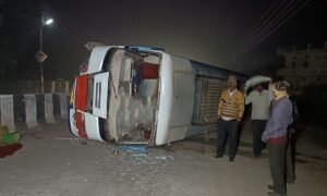 सतना:तेज रफ्तार बस डिवाइडर से टकराते हुए अनियंत्रित होकर अमरपाटन के मुख्य बाजार मार्ग पर पलटी , घटना में बस चालक हुआ मामूली घायल