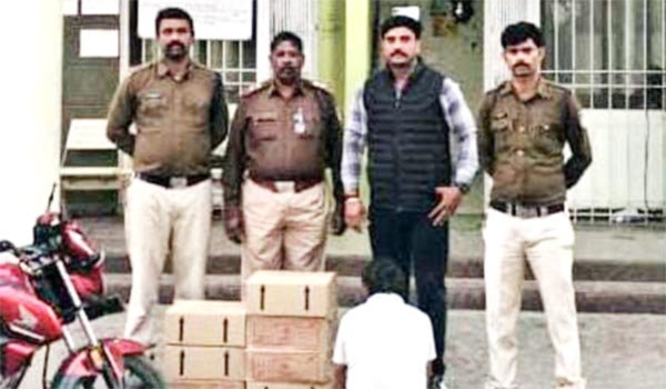 रेहटी. पुलिस ने मुखबिर की सूचना पर मांजरकुई के समीप अवैध शराब लेकर जा रहे बाइक सवार दो युवकों को रोका, लेकिन एक आरोपी पुलिस को झांसा देकर फरार होने में कामयाब हो गया, जबकि एक पुलिस के हत्थे चढ़ गया. आरोपी के पास शराब बरामद की गई है. रेहटी पुलिस को मुखबिर से सूचना प्राप्त हुई कि मांजरकुई-मरदानपुर के बीच पुलिया के पास दो व्यक्ति बाइक से अवैध शराब लेकर नर्मदा घाट की ओर बिक्री हेतु जा रहे हैं. मौके पर पहुंची पुलिस को देखकर एक आरोपी फरार हो गया, जबकि एक अन्य व्यक्ति हेमराज मीणा आ. महेश मेहरा निवासी आवंली घाट को पुलिस ने दबोच लिया. फरार आरोपी का नाम अंकित कीर पिता शिवनारायण कीर, निवासी ग्राम आंवलीघाट बताया गया. आरोपी हेमराज मेहरा के पास मौजूद प्लास्टिक की बोरी की तलाशी लेने पर 7 पेटी मसाला शराब मिली. पुलिस ने उक्त शराब और बाइक को जब्त करते हुए आरोपी के खिलाफ आबकारी एक्ट के तहत प्रकरण दर्ज कर लिया है, वहीं फरार आरोपी की तलाश की जा रही है.