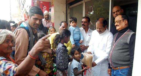 पूर्व नपाध्यक्ष श्री राय ने स्टेट बैंक के सामने स्थित अपने कार्यालय से गरीबों को अनाज का वितरण किया आयोजित कार्यक्रम में अनाज का वितरण शुरू हुआ जो काफी देर तक चलता रहा. जरूरतमंद और गरीबों को करीब 50 क्विंटल से अधिक पांच-पांच किलो के गेहंू के पैकेट प्रदान किए गए. नव वर्ष के पहले दिन अनाज वितरण भिक्षा मांगने वालों को किया गया. पूर्व में श्री राय ने निर्धन विद्यार्थियों को कापी किताब कई बार वितरित किए. उनकी यह निस्वार्थ समाजसेवा पूरे साल जारी रहती है. इस मौके पर सैकड़ों की संख्या में जरूरतमंदों को अनाज का वितरण किया गया. इस मौके पर बहादुर सिंह दांगी, पवन राठौर, महेन्द्र सिंह ठाकुर मनकी, धर्मेन्द्र यादव, एआर शेखमुंशी, रवि धूत, गोविन्द शर्मा, पवन अरोरा, नावेद जाफरी, दीलिप गांधी, राधेश्याम राय, राजेन्द्र नागर, मनोज दीक्षित मामा सहित अनेक लोग उपस्थित थे.