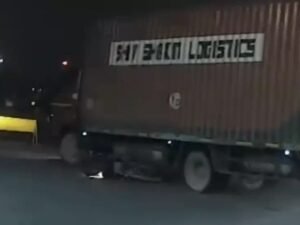 इंदौर. कनाडिया इलाके में एक कंटेनर चालक की लापरवाही कैमरे में कैद हो गई. तेज और अचानक मोड़ लेते कंटेनर ने बाइक को टक्कर मारी और बाइक सवार युवक युवती के ऊपर से निकल गया. हैरानी की बात यह रही कि दोनों जान बचाकर निकल आए. घटना का वीडियो सोशल मीडिया पर तेजी से वायरल हो रहा है.