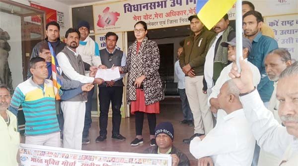 सीहोर। संवैधानिक अधिकारों के खिलाफ साजिश रचने और ओडिशा राष्ट्रीय अधिवेशन की परमिशन नहीं देने के विरोध में राष्ट्रव्यापी चरणबद्ध आंदोलन के तहत कलेक्ट्रेट में भारत मुक्ति मोर्चा, राष्ट्रीय पिछड़ा वर्ग मोर्चा, बहूजन क्रांति मोर्चा, राष्ट्रीय परिवर्तन मोर्चा के प्रदेश व जिला पदाधिकारियों के नेतृत्व में कार्यकर्ताओं के द्वारा राष्ट्रपति के नाम के ज्ञापन उिप्टी कलेक्टर वंदना राजपूत को दिया गया. कार्यकर्ताओं ने नारेबाजी करते हुए आरएसएस बजरंग दल जैसे संगठनों पर प्रतिबंध लगाने, और ईवीएम चुनाव सिस्टम बंद कराने जैसी मांग की गई. ज्ञापन में बताया गया कि आरएसएस बीजेपी की राजनीति और व्यवस्था ओबीसी समाज को भ्रमित व गुमराह रखने पर आधारित है. जाति आधारित जनगणना होने से ओबीसी की वास्तविक जनसंख्या सामने आएगी. सामाजिक, शैक्षिक और आर्थिक असमानताओं का सच उजागर होगा. इसी डर से इस अधिवेशन को साजिश करके षडय़ंत्रपूर्वक रोका गया है.
