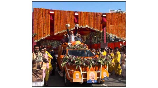 सोमनाथ, 11 जनवरी (वार्ता) प्रधानमंत्री नरेन्द्र मोदी और गुजरात के मुख्यमंत्री भूपेंद्र पटेल की उपस्थिति में रविवार को सोमनाथ में शौर्य यात्रा आयोजित की गयी।
