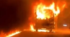 प्रारंभिक जानकारी के अनुसार, बस का टायर फटने के बाद उसमें आग भड़क उठी। आग तेजी से फैली और देखते ही देखते पूरी बस को अपनी चपेट में ले लिया। आग लगते ही बस में सवार यात्रियों में हड़कंप मच गया।