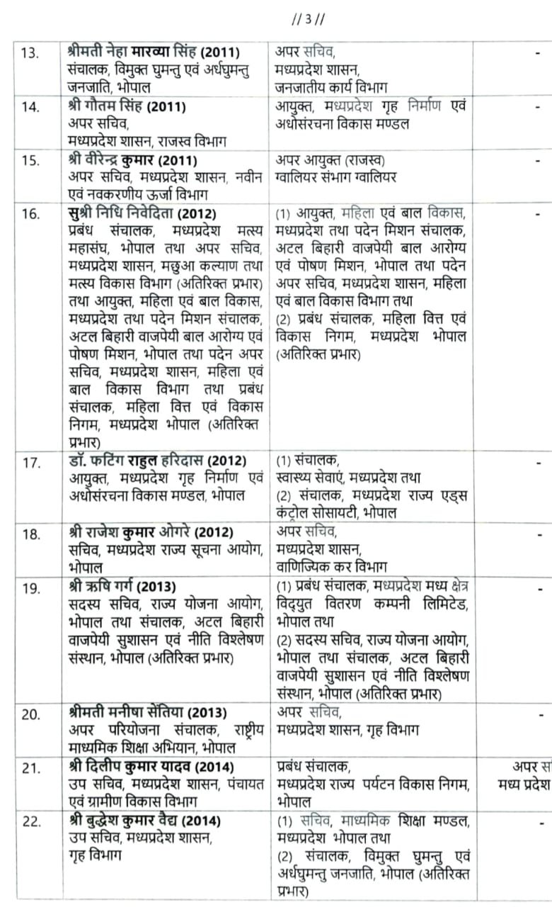 भोपाल। राज्य सरकार ने आज शाम भारतीय प्रशासनिक सेवा के 26 वरिष्ठ अधिकारियों के तबादले किए हैं। फेरबदल के बाद शिवशेखर शुक्ला को ग्रह विभाग का अपर मुख्य सचिव बनाया गया है। धनराजू एस को स्वास्थ्य विभाग का कमिश्नर पदस्थ किया है। पूरी सूची इस प्रकार है।