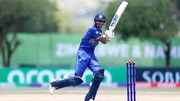 इससे पहले आज यहां श्रीलंका ने टॉस जीतकर पहले बल्लेबाजी करने का फैसला किया। बल्लेबाजी करने उतरी श्रीलंका की शुरुआत अच्छी नहीं रही और उसने 59 के स्कोर तक अपने तीन विकेट गंवा दिये। दिमंथा महाविथान (नौ), विरान चामुदिथा (छह) और दुलनिथ सिगेरा (22) रन बनाकर आउट हुये। इसके बाद कविजा गमागे ने कप्तान विमथ दिनसारा के साथ पारी को संभाला। दोनों बल्लेबाजों ने चौथे विकेट के लिए 80 रन जोड़े। 33वें ओवर में कविजा गमागे (49) रन आउट हुये। छठें नंबर पर बल्लेबाजी करने आये चमिका हेनातिगाला ने विमथ दिनसारा के साथ पांचवें विकेट के लिए 100 रनों की साझेदारी की। इसी दौरान 46वें ओवर में शतक की ओर बढ़ रहे विमथ दिनसारा को ओलिवर रिले ने अपना शिकार बना लिया। विमथ दिनसारा ने 102 गेंदों में छह चौके और एक छक्का उड़ाते हुए 95 रनों की पारी खेली। श्रीलंका की टीम ने निर्धारित 50 ओवरों में पांच विकेट पर 267 रनों का स्कोर खड़ा किया। चमिका हेनातिगाला 51 रन बनाकर नाबाद रहे।