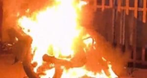 बैतूल: मध्यप्रदेश के बैतूल शहर के रेलवे स्टेशन परिसर में उस समय अफरा-तफरी मच गई, जब नो पार्किंग जोन में खड़ी एक मोटरसाइकिल में अचानक आग लग गई।प्रत्यक्षदर्शियों के अनुसार रेलवे पुलिस बल (आरपीएफ) द्वारा बाइक पर जैमर लॉक लगाए जाने से नाराज युवक ने सोमवार शाम को कथित तौर पर नशे की हालत में खुद ही अपनी बाइक में आग लगा दी और मौके से फरार हो गया। आग की लपटें उठते ही यात्रियों और दुकानदारों में हड़कंप मच गया।