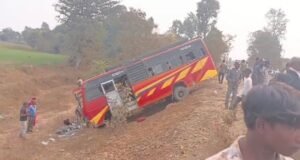 खंडवा। धुलकोट से शिवाबाबा होते हुए पंधाना आ रही एक निजी यात्री बस शनिवार दोपहर पंधाना थाना क्षेत्र अंतर्गत घाटाखेड़ी के पास जामनिया गांव समीप अनियंत्रित होकर सडक़ किनारे पलट गई। हादसा इतना भीषण था कि बस के पलटते ही मौके पर अफरा-तफरी मच गई। दुर्घटना में बस में सवार 16 यात्री घायल हो गए, जिनमें 5 की हालत गंभीर बताई जा रही है।