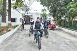 रीवा। पर्यावरण की सुरक्षा तथा स्वयं की स्वास्थ्य रक्षा के उद्देश्य से सप्ताह में मंगलवार के दिन कमिश्नर बीएस जामोद की पहल पर अधिकारी और कर्मचारी साइकिल से कार्यालय पहुंच रहे हैं. यह क्रम लगातार बना हुआ है. सुमंगल साइकिल दिवस पर कमिश्नर और अन्य अधिकारी साइकिल से कमिश्नर कार्यालय पहुंचे. कमिश्नर के साथ प्रभारी खनिज अधिकारी बसंतराम, संयुक्त संचालक कोष एवं लेखा टीएन टेकाम, अन्य संभागीय अधिकारी तथा कमिश्नर कार्यालय के कर्मचारी भी साइकिल से कार्यालय पहुंचे. संयुक्त आयुक्त दिव्या त्रिपाठी तथा कई अधिकारियों ने कार्यालय पहुंचने के लिए ई रिक्शा और ई स्कूटी का उपयोग किया.